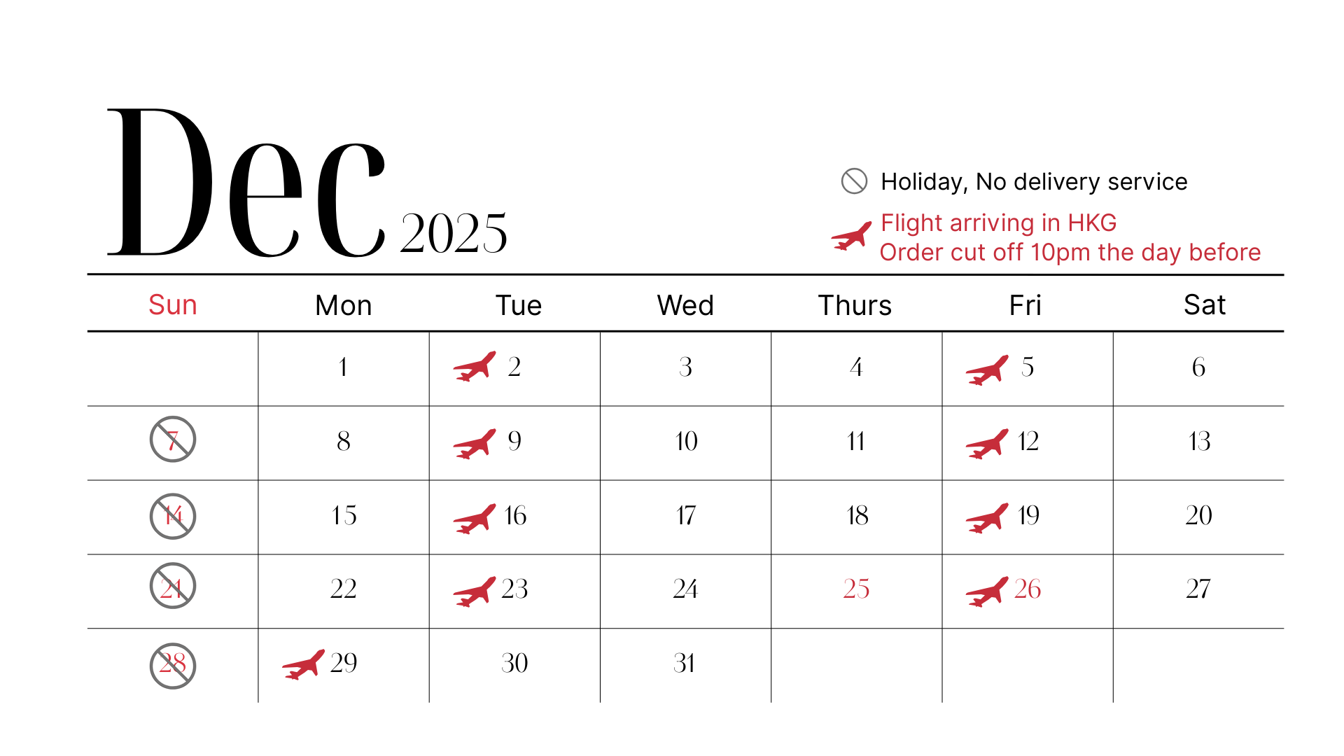 →Delivery: TUE (5pm-9pm),WED &THURS (whole day)