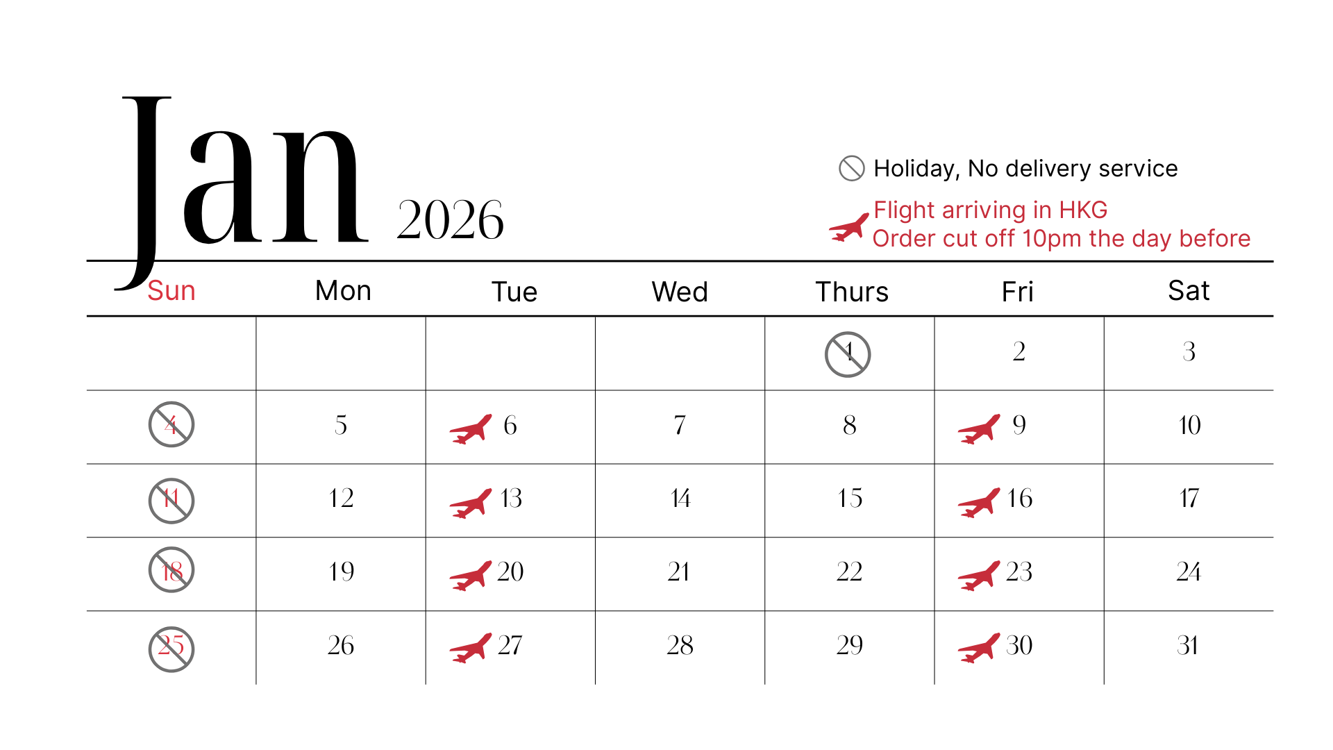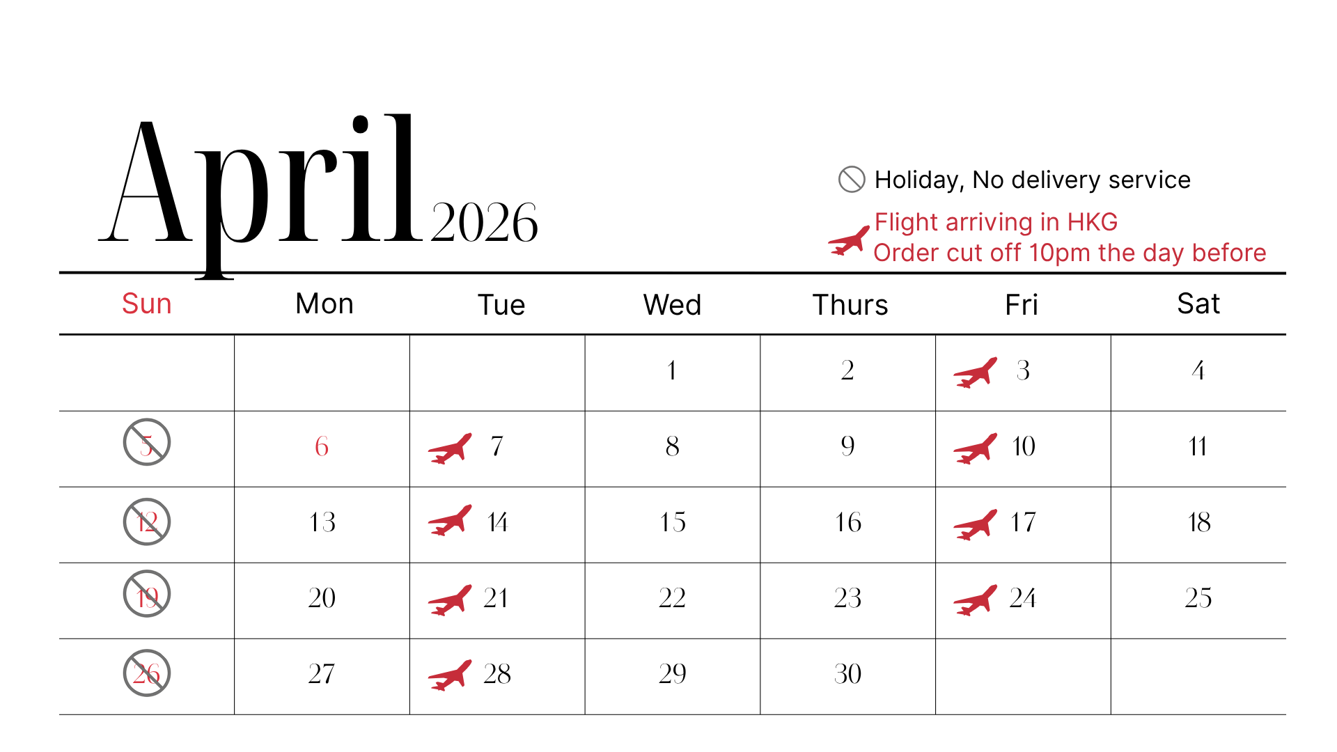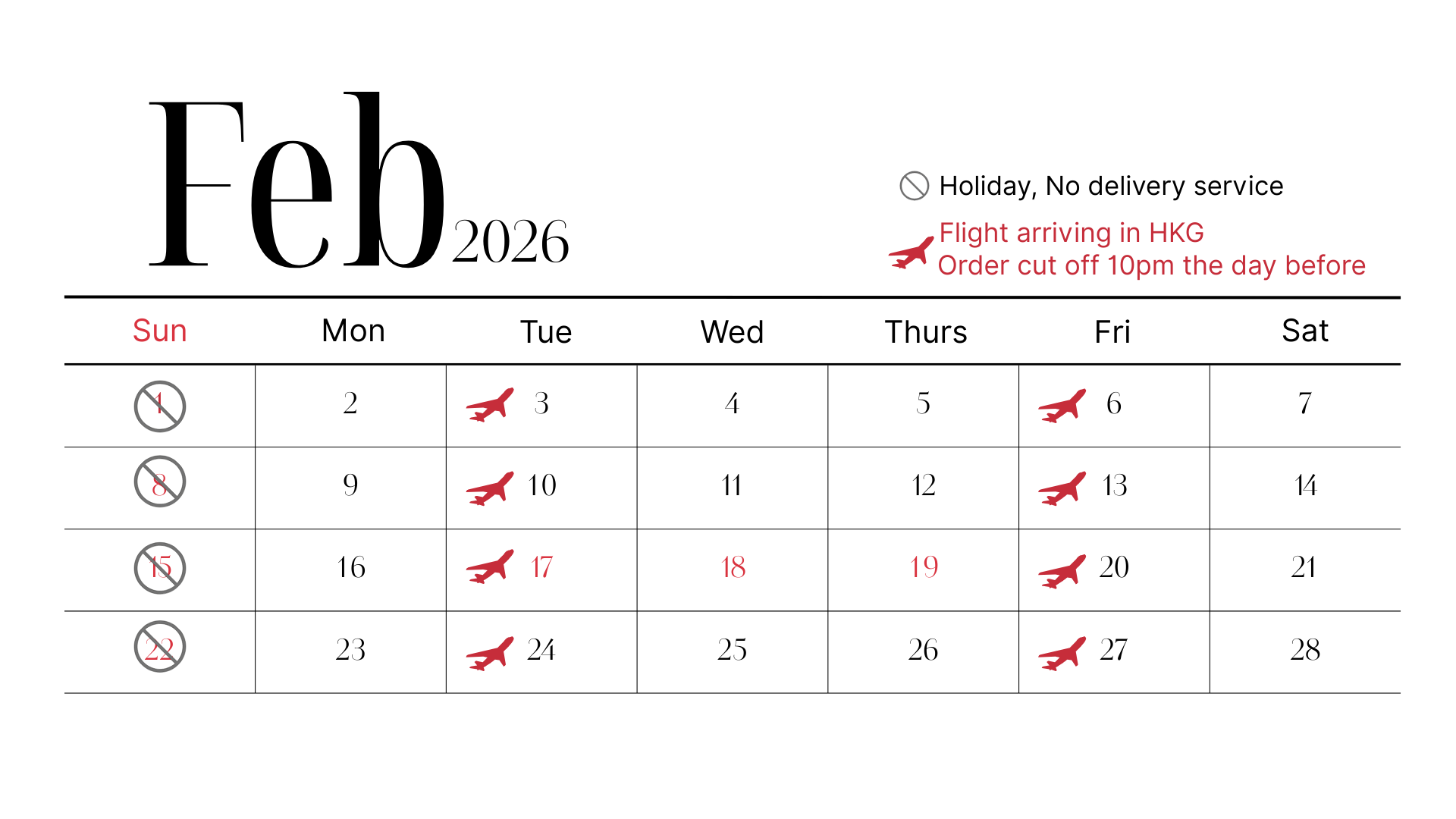 *For flight schedule, please refer to the calendar above